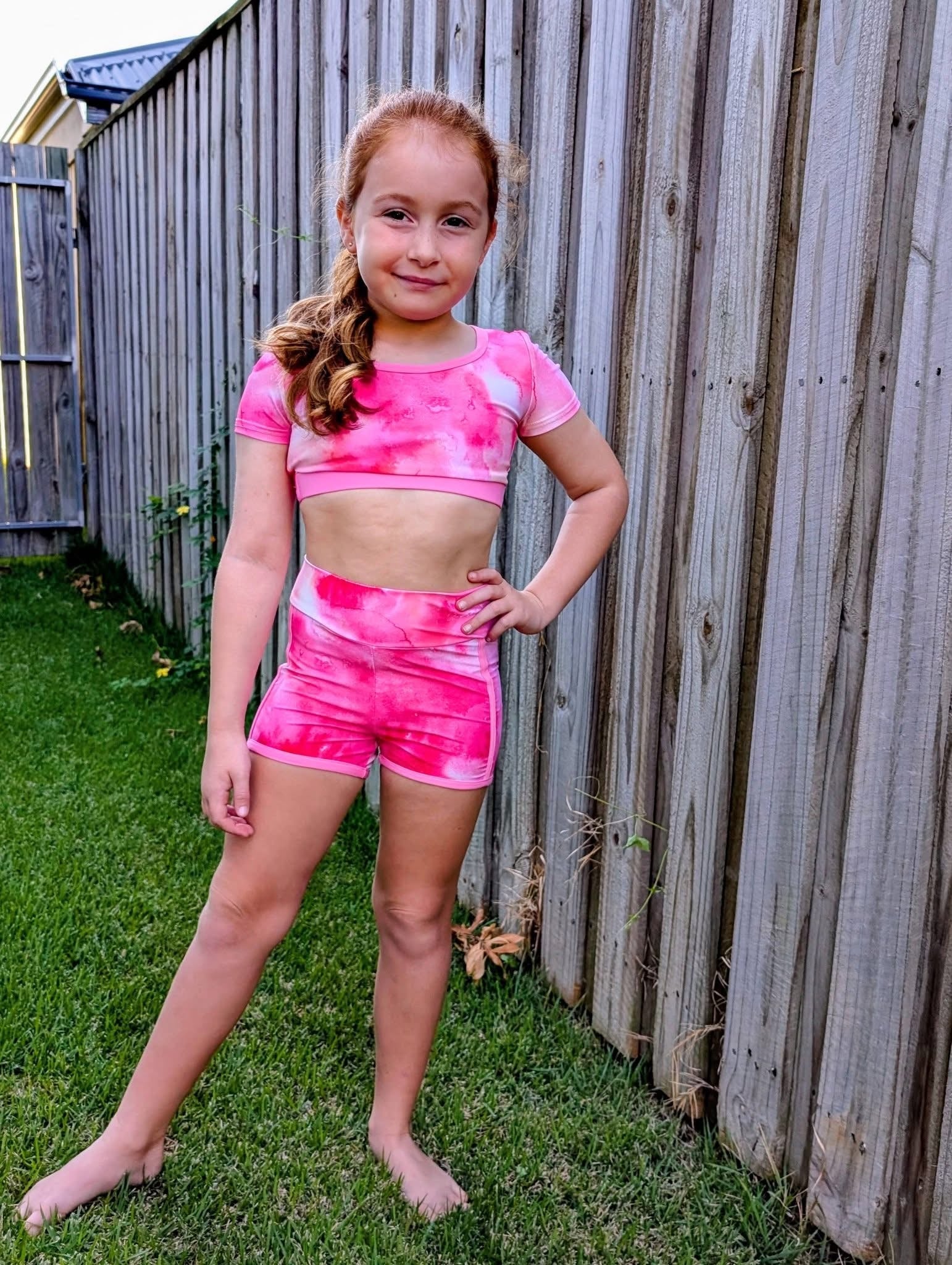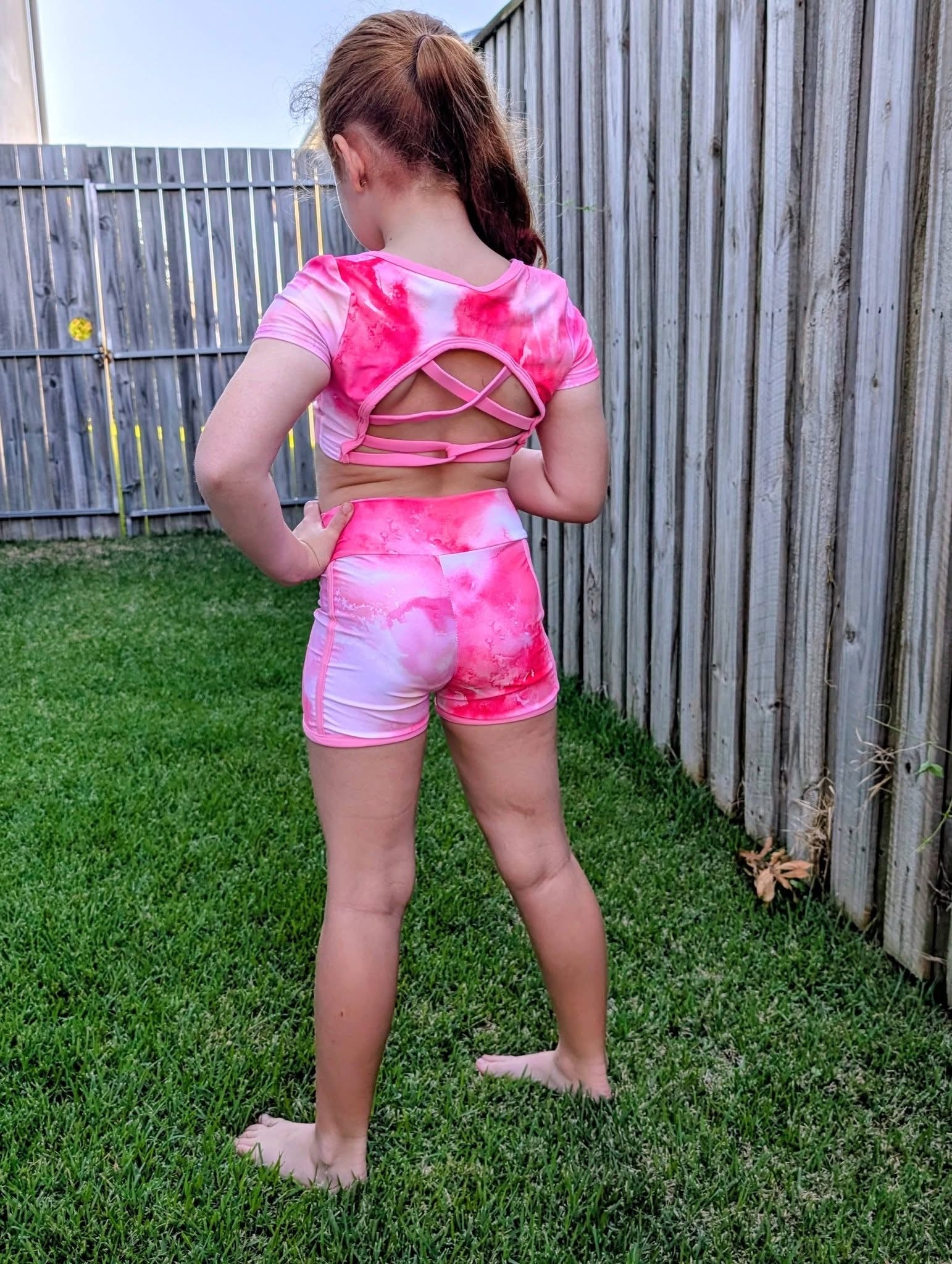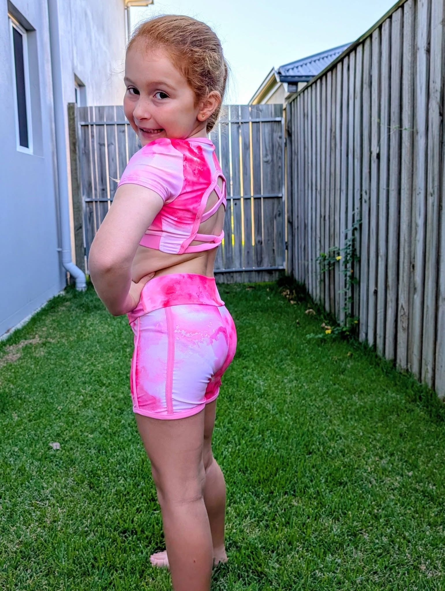 Contrast accents on the side and leg binding, introduces a subtle yet fun design detail to this active pattern. These shorts feature a longline gusset, found in most dance brands shorts, for high-performance comfort. Though these were designed with dancers in mind, they are a great all around athletic or everyday short too. Note: they can also be made as regular shorts without the gusset.